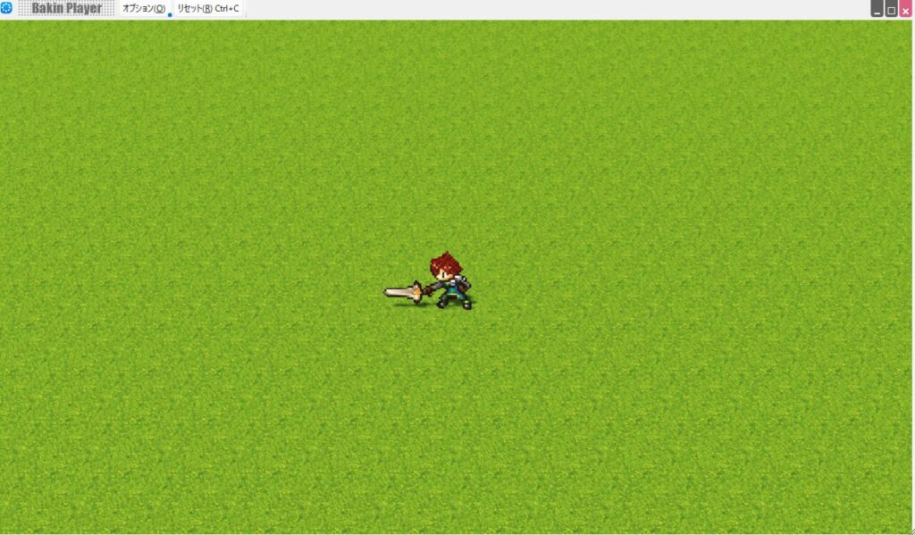 それでは実際に作成した剣を振る処理が正常に動くか確認しましょう。「テストプレイ」を実行して、「発射ボタン1(デフォルトなら「Z」キー)」を押してみてください。問題なければプレイヤーが剣を振るようになったと思います。