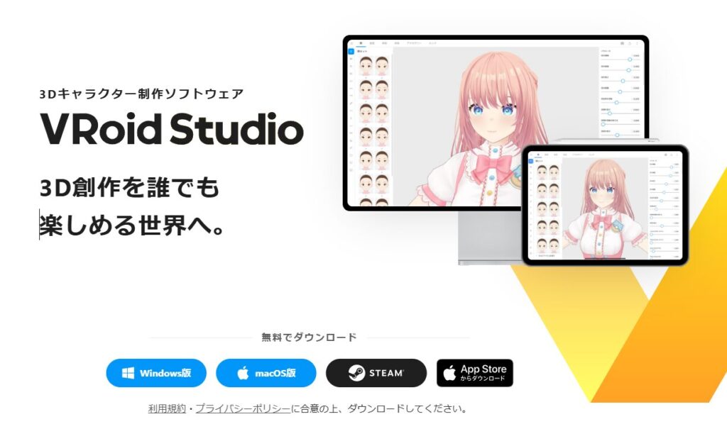 「VRoid Studio」とは一言で言うと「無料で簡単に動かせるオリジナルの3Dキャラクターを作成することが出来るソフト」です。