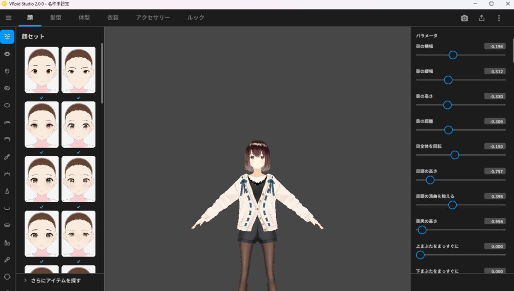 それでは「VRoid Studio」の「AvatarSample A」を選択してみて下さい。そうすると、次のように「AvatarSample A」の編集画面が表示されます。