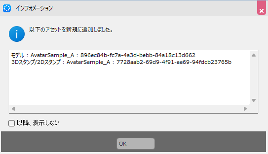 上手く取り込まれると、次のようなインフォメーションがポップアップします。問題ないので、「OK」を押して下さい。