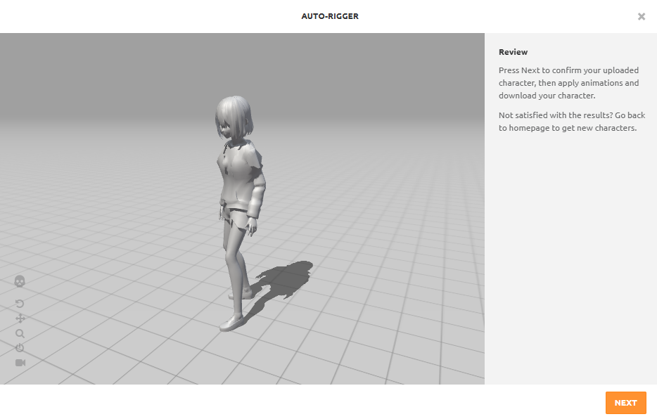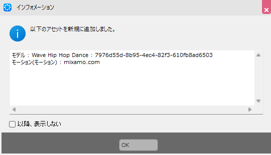 正常にアップロードが完了すると、次のように確認画面が表示されます。え、思ってたのと違う・・・、と感じる人も多いでしょうが、モーションの作成にここでの見た目はほとんど関係しません。