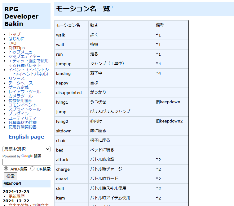 どのモーション名があらかじめBakinのシステム上で使われるのかという点については、公式Wikiのモーション名一覧を見れば分かります。