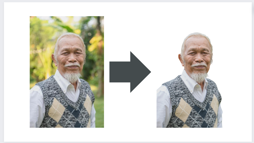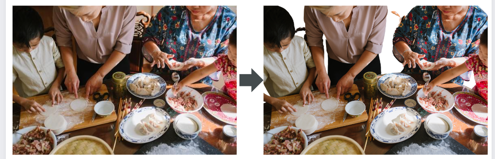 先ず「背景除去」については上でも解説した通り、以下のようにメインとなる人や物と背景をAIが区別して背景を除去します。