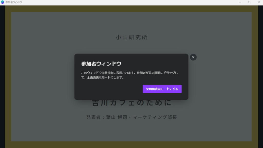 そうすると、「プレゼンテーションウィンドウ」と「参加者ウィンドウ」の2つが表示されます。