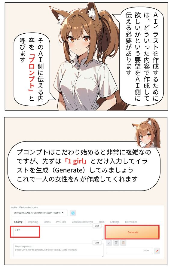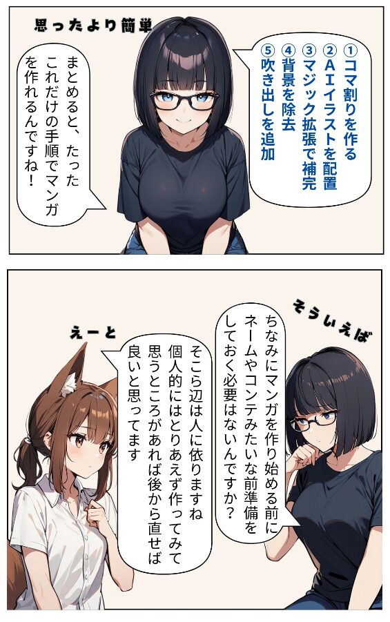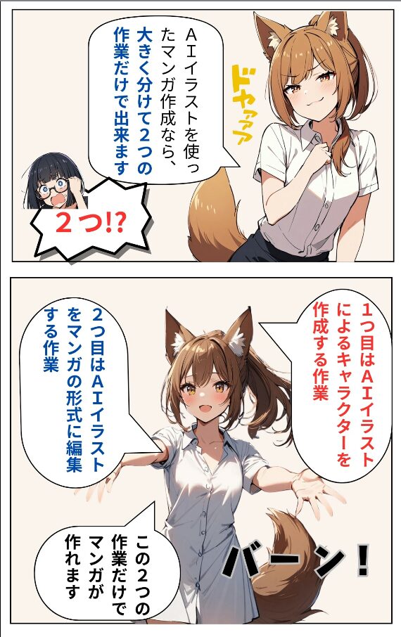 AIマンガを作るのはとても簡単です。具体的にいうと次の2つの作業だけで作れます。