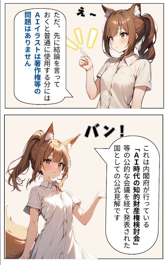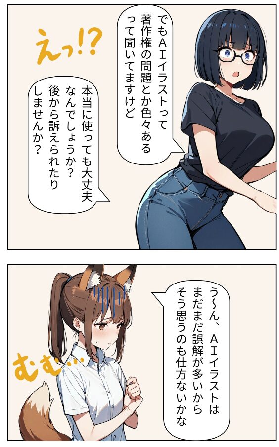 AIイラストを使用してマンガを作成するというと、著作権などの問題は無いのか?という疑問を持つ人が多いと思います。