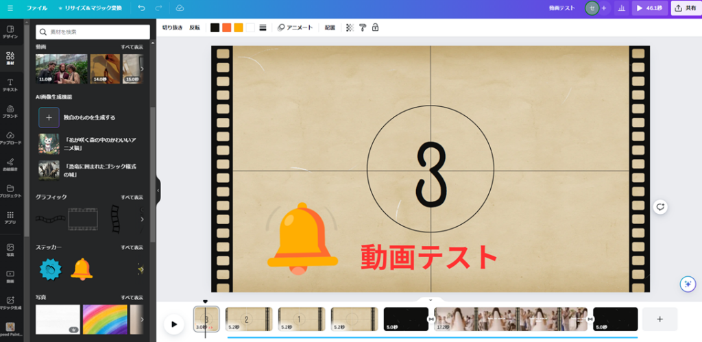 これは文章だと分かりづらいかもしれませんので、自分でCanvaを触ってみて動画にテキストと画像素材を入れて試してみてください。そうすればテキストと素材の扱いの違いが感覚で分かってくると思います。