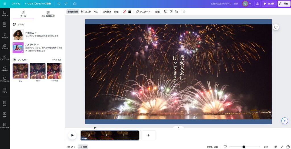 あくまでCanvaの動画編集はすでに撮影済みの動画をカジュアルに編集することが目的になっているものですので、今回紹介した程度の編集で十分に感じる人達に向けられたものであるとご理解ください。