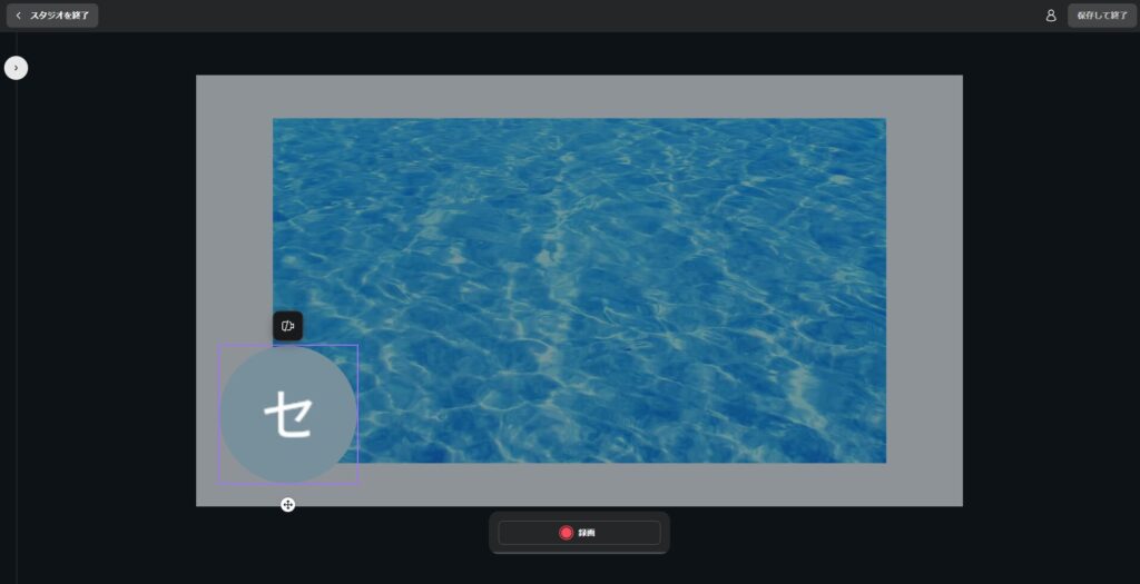 「自分を録画する」ボタンを押すと次のようにキャンバスの内容と自分の顔(今回はカメラをオフにしています)が一緒に表示されます。