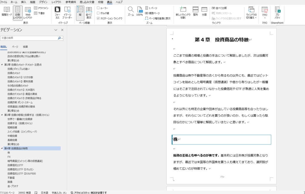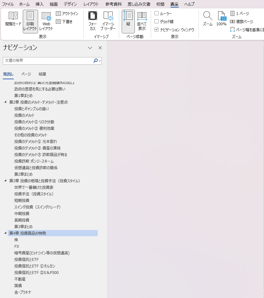 流石にここでWordの使い方まで説明する必要はないと思いますので、どうやってWordで本の内容を書いていくかについて深堀していきます。