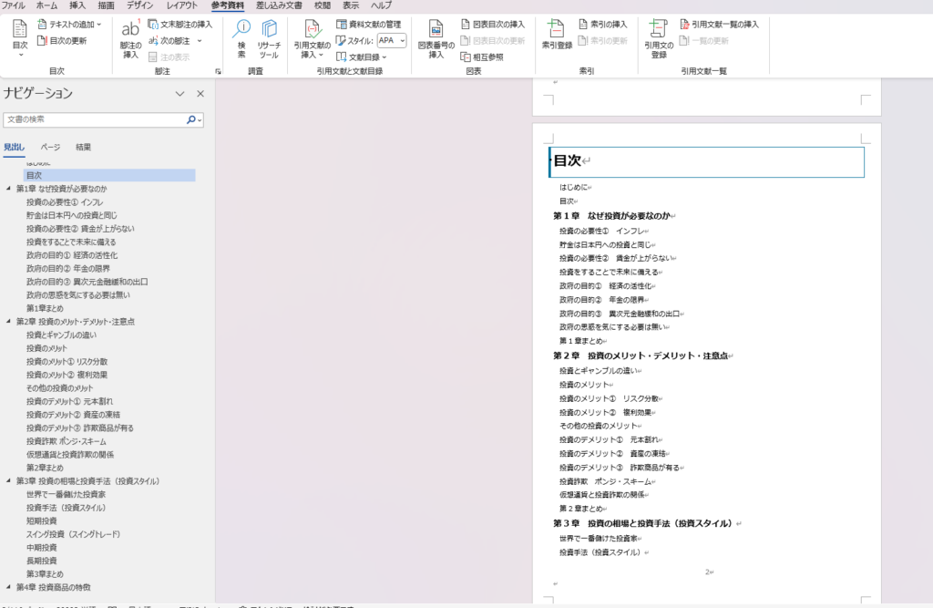 このような形で文章を作成していくことで、次の目次作成が自動で出来るようになります。