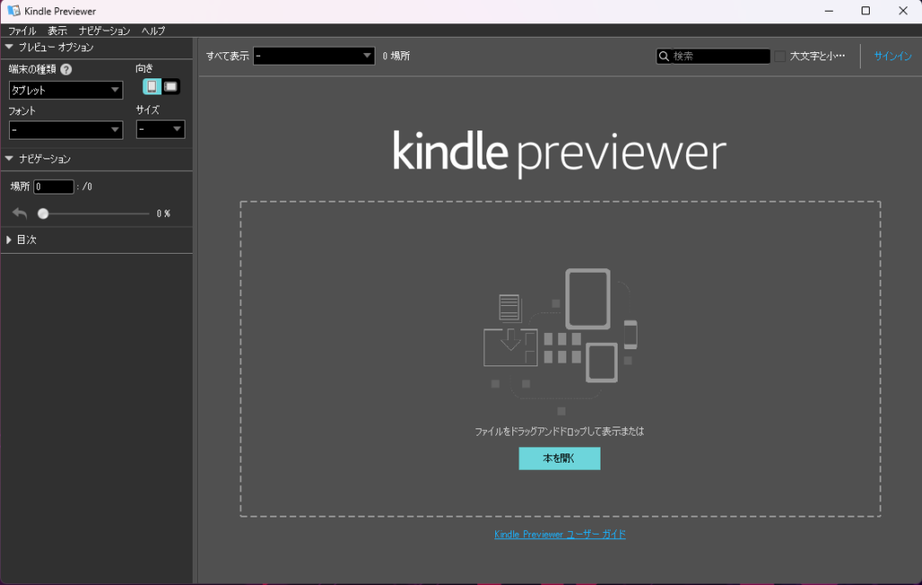 本の内容を事前確認するためには、Kindleが提供している「Kindle Previewer 3」というツールを利用する必要があります。