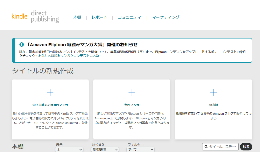 それらの事前確認をして問題なければ、いよいよKindleに出版してみましょう。