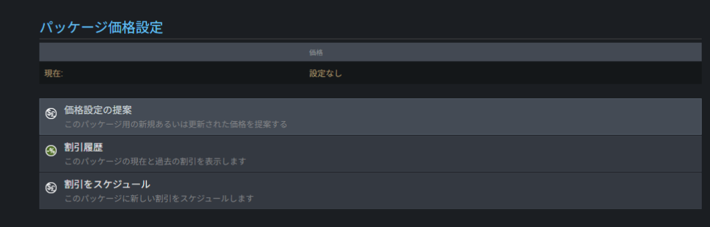 私は最初、製品版と体験版のビルドの区別が付いていなかったので、価格設定も済ませてしまいましたが、皆さんは体験版リリースのタイミングでやらなくても大丈夫です。